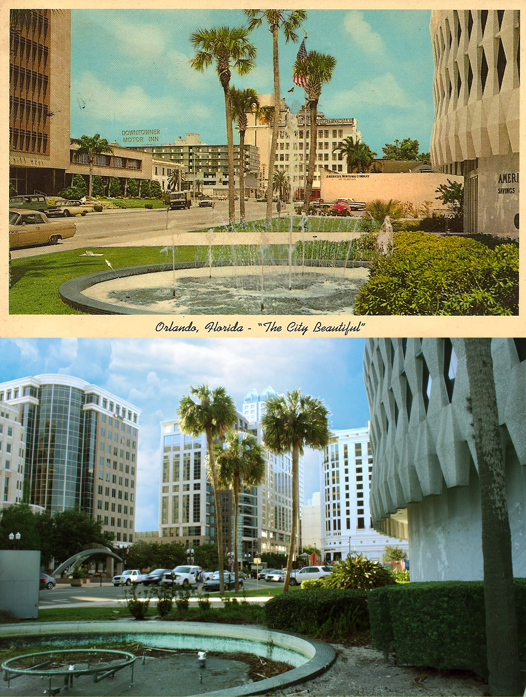 From 1924 until 1990 this corner of Orange Avenue and Colonial Drive belonged to the Orange Court Hotel. The Camden Apartments and the Residence Inn (under construction) towering over and just inches away from Mama B’s Subs are the newcomers.